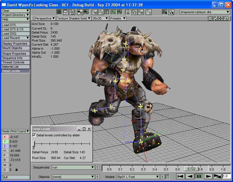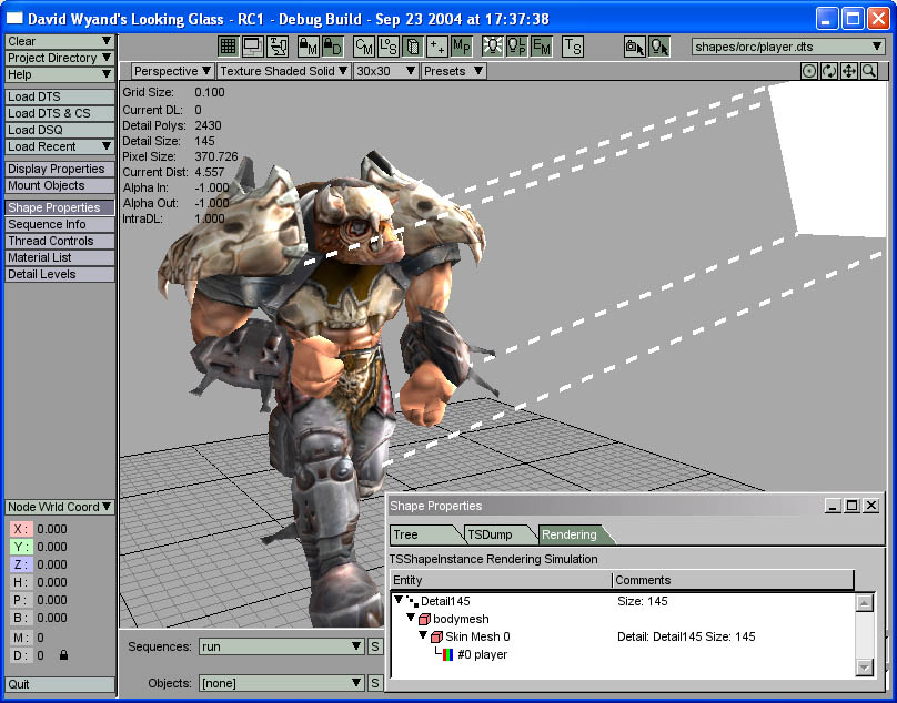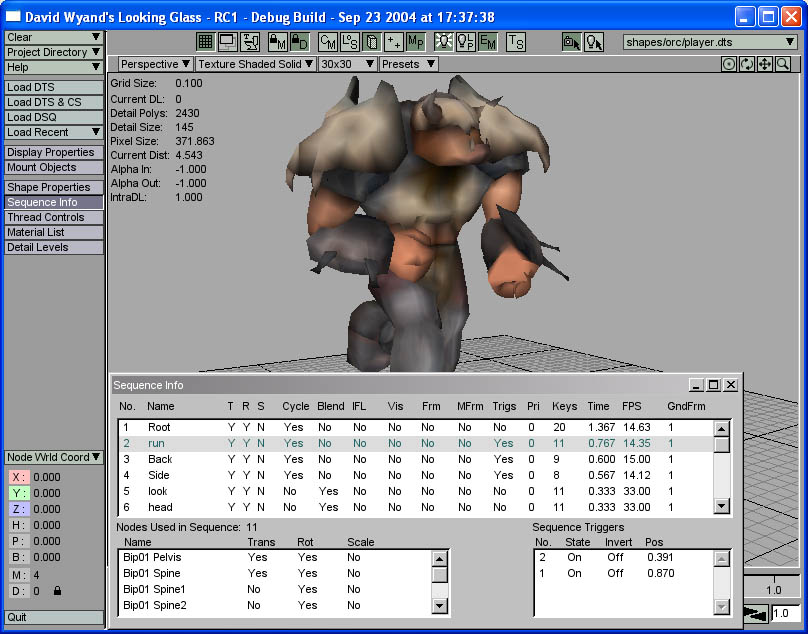 The TGE Orc player model has been loaded and the BIP01