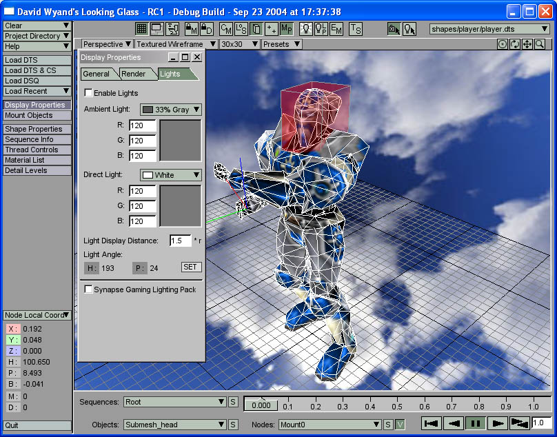 node, Looking Glass draws the node's axis as well as displays