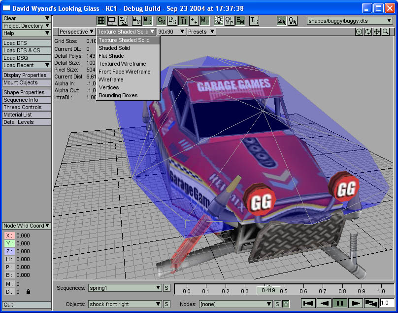 | The buggy.dts object's collision mesh is displayed over the