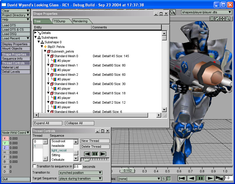used by those meshes are shown. The Thread Controls window is