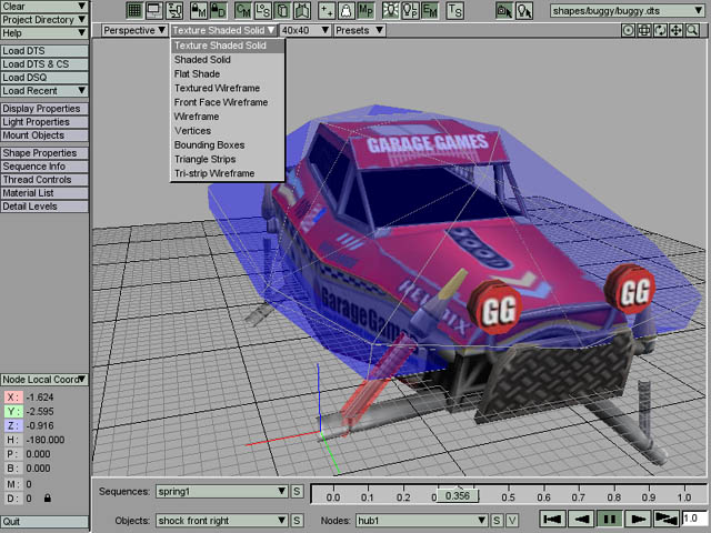 | The TGE buggy.dts object's collision mesh is displayed over