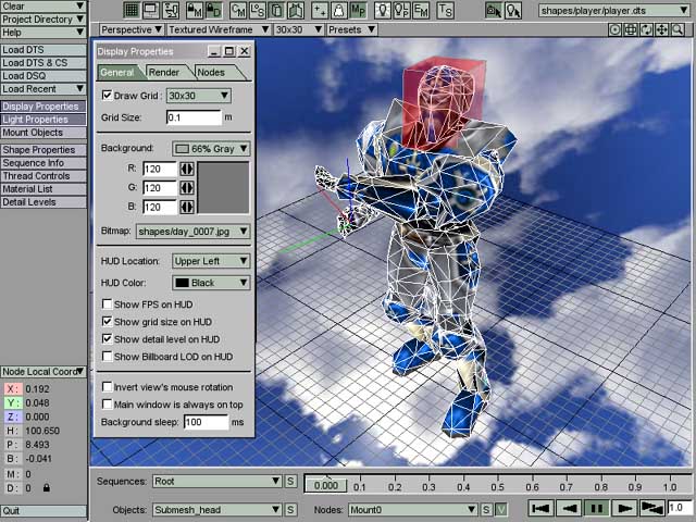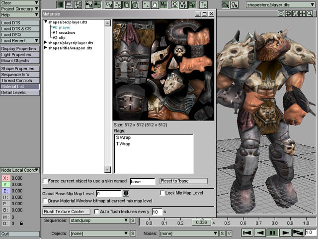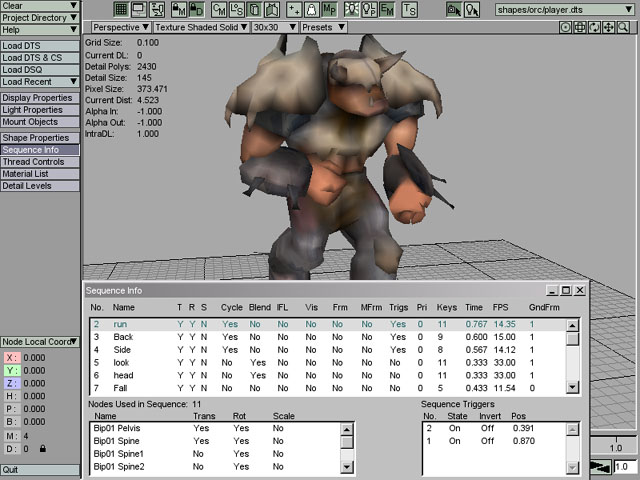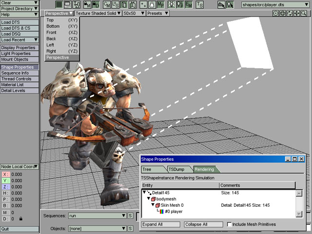 The TGE Orc player model (player.dts) has been loaded into